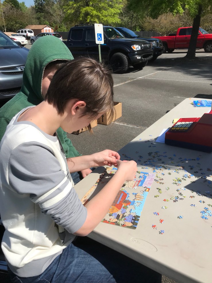 Building puzzle while collecting for the church yard sale. Posted on April 21, 2018 by brookshouse Share this: Share on Facebook (Opens in new window) Facebook Share on X (Opens in new window) X Like Loading... Published by brookshouse Chief Product Officer Insignia Group LC www.insigniagroup.com View all posts by brookshouse
