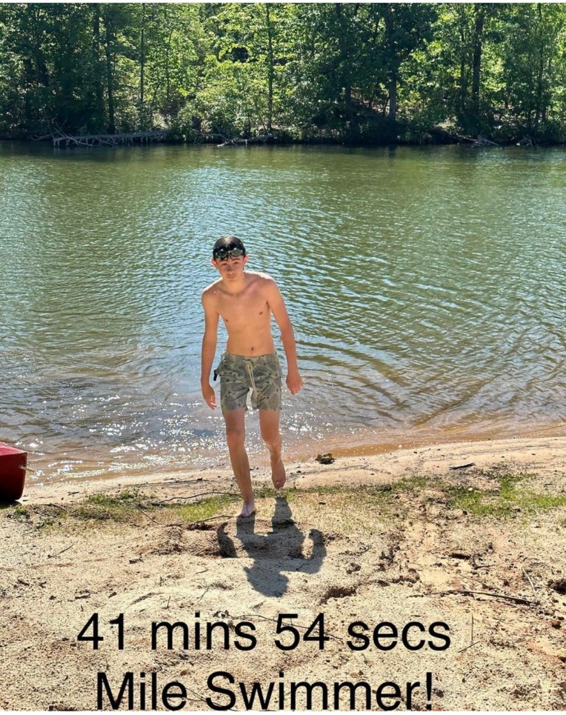 1 mile = 1609 meters = 32 laps in a 50 meter pool Posted on June 29, 2023 by brookshouse Way to go Max! Share this: Click to share on Facebook (Opens in new window) Facebook Click to share on X (Opens in new window) X Like Loading... Published by brookshouse Chief Product Officer Insignia Group LC www.insigniagroup.com View all posts by brookshouse