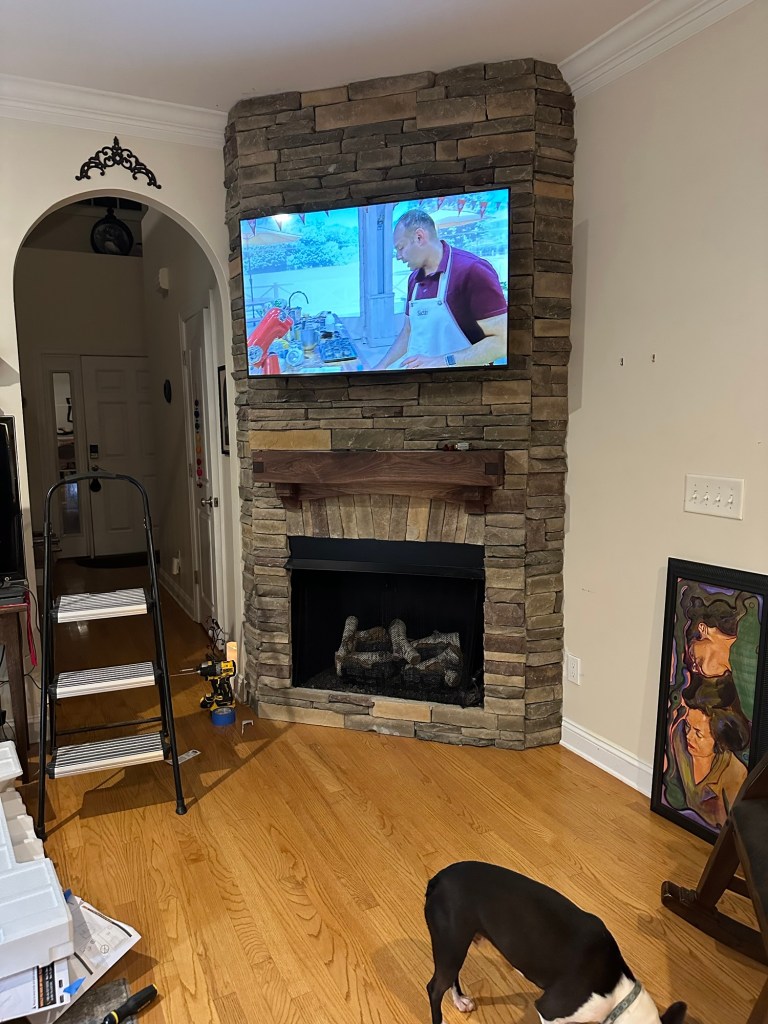 1 thought on “New TV mounted to the fireplace”