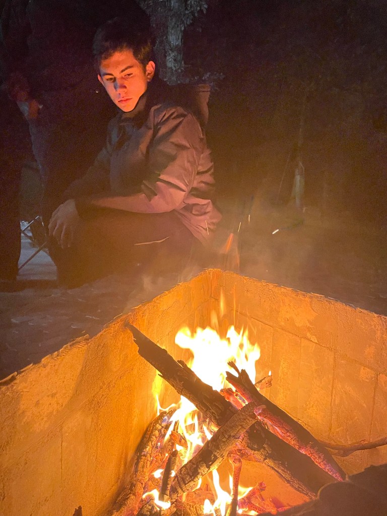 Coopers fire in the new fire pit