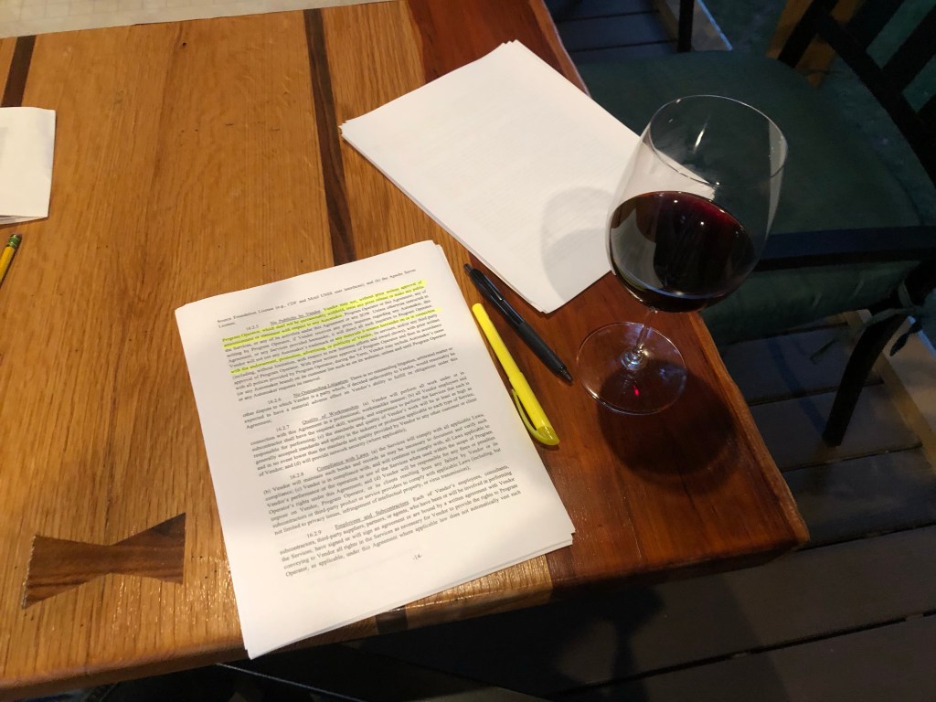 Date this evening with a Master Services Agreement October 14, 2020 brookshouse1 Comment Combing through pages and pages of legalese. Dry! (And I don’t mean the wine)
