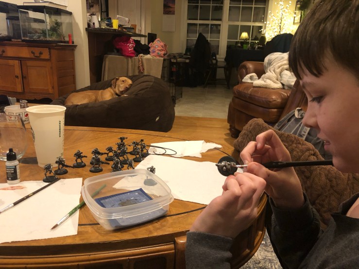 Max painting his Warhammer army